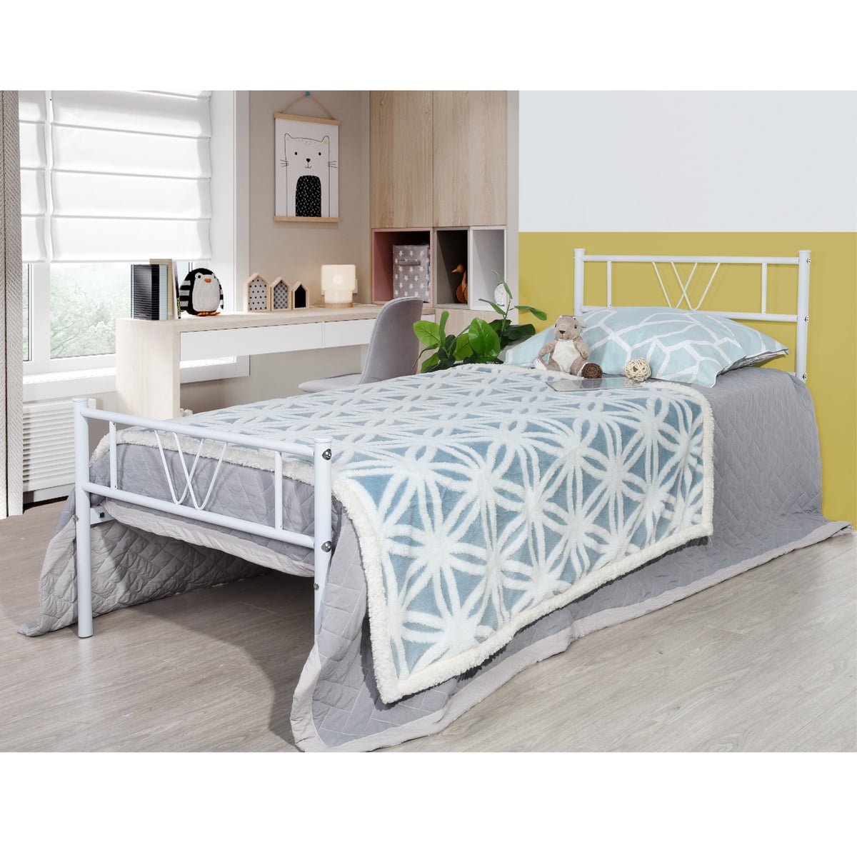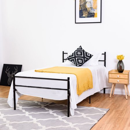 Shop this collection (15) 14 in. Bedroom furniture comes in many different styles and colours. Zinus joseph 10 inch platforma low profile bed frame / mattress foundation / box spring optional / wood slat support. Furniturer conway twin size metal bed frame platform with headboard and stable metal slats, white mainstays nightstand with drawer, white 15.67 in x17.72 in x24.13 in x22.88 lbs. Zinus mia modern studio 14 inch platform 1500h metal bed/ mattress foundation / wooden slat support / with headboard. Zinus paige compack 7 metal heavy duty bed frame, twin. Voilamart twin metal bed frames with headboard and footboard, single bed with storage, 6 legs bed frame platform no box spring needed ,twin bed frame set for kids (black) 4.3 out of 5 stars 317. The mainstays twin metal bed is a practical space saving solution for small bedrooms and is appropriate for your master bedroom, guest bedroom and teen's bedroom. Smartbase black twin metal bed frame with headboard. And whether it's white or black bedroom furniture you're looking for or furniture with a modern or rustic slant, walmart.ca has the options you're looking for. When not in use, you can fold and store the bed frame in its original box. 4.5 out of 5 stars with 303 ratings. H heavy duty metal platform bed frame with 499 reviews and the brookside 14 in.